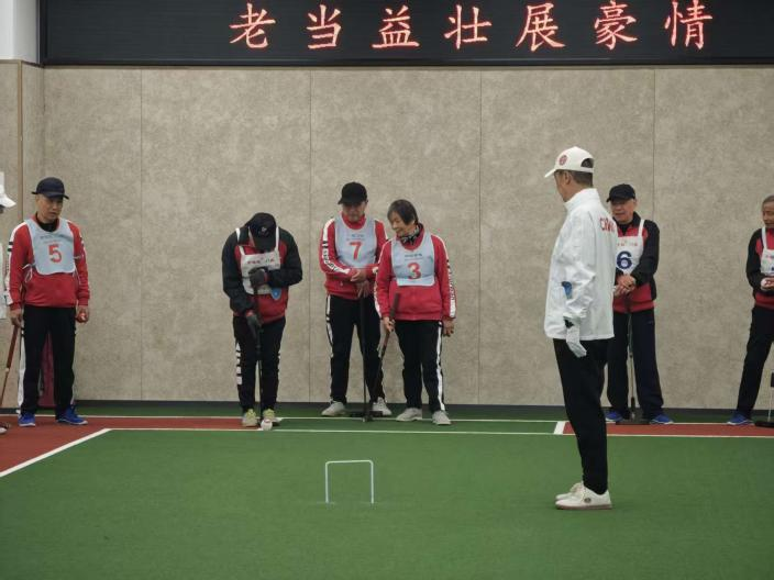 本届门球赛的成功举办,不仅为全县老年门球爱好者提供了切磋技艺、交流感情的平台,更充分展示了海盐县老年人积极向上、健康快乐的精神风貌,对推动全民健身运动深入开展,积极应对人口老龄化具有重要意义。正如主标题 “岁月暖阳映初心,门球飞舞聚知音”的意境所言:这两句就像是为“门球”活动或赛事量身定制的一副对联,上联写“时间+情感”:岁月可以老去,但阳光与初心同在;下联写“场景+人情”:门球飞舞的现场,正是“初心”落地的舞台,也是“知音”相逢的磁场。整副对联既点出“门球”主题,又把“老年生活”写得温暖而昂扬:“人老情不老,挥杆聚知音;暖阳依旧在,初心伴岁新。”