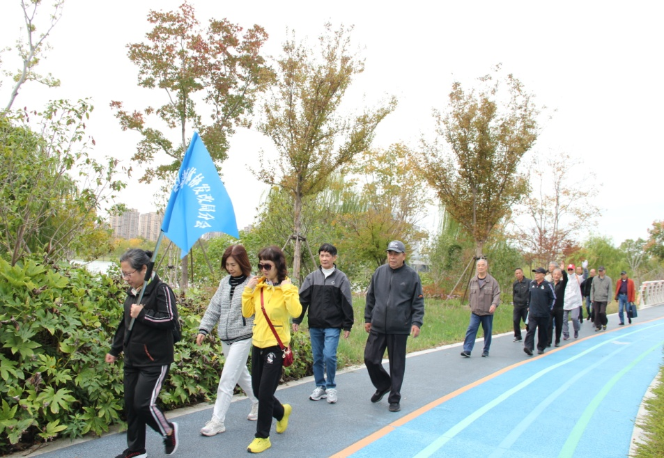 当天上午9时许,会员们来到天仙湖公园。初冬的东北风扑面,会员们都感到阵阵寒意,但大家都精神饱满,自觉排成2列纵队,等待出发。当分会会长胡立新宣布健步走开始。秘书长张英便举起标有“海盐县老年体协发改局分会”旗帜,走到队伍前列。会员们跟着飘扬的会旗,迈动着骄健的步划,一路向前。