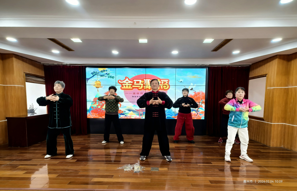 老同志们意犹未尽,自发加演了两个节目。徐张华、朱琴芬的快板《赞海盐》,唱出了对家乡日新月异发展的赞美和自豪。李建飞的《二十四式简化太极拳》,动作舒展优美,彰显太极精髓,曾代表海盐参加全国太极表演赛,获浙江赛区一等奖。最后,集体健身气功八段锦表演《八段纳福》,在舒缓整齐的节奏中为整场活动画上圆满句号,也寄托了对健康长寿、福祉绵长的美好祝愿。
