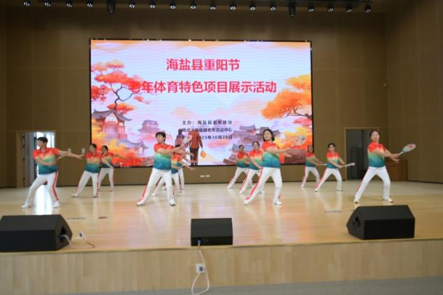 金秋十月,丹桂飘香,重阳佳节如约而至。10月28日,由海盐县老年体协主办的重阳节老年体育特色项目展示活动在县老年活动中心隆重举办。本次活动以“银发体育,爱满重阳”为主题,集结了来自县老年体协有关分会和老年大学等单位的银发体育运动爱好者,他们凭借精湛的技艺与饱满的热情,生动展现了当代老年人健康向上、积极进取的精神风貌,以体育赋能的形式共同庆祝重阳佳节。